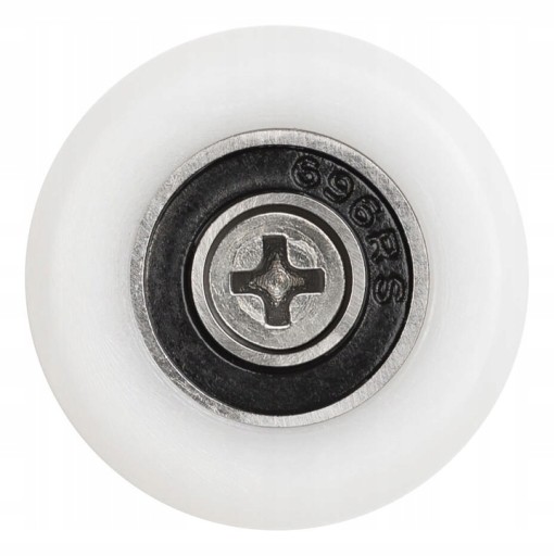 Ten model kółek posiada łożysko kulkowe wykonane ze stali nierdzewnej. Dzięki temu ich żywotność jest znacznie wyższa niż produktów z budżetowym łożyskiem. Zestaw zawiera osiem sztuk kółek oraz osiem śrub montażowych. Tworzywo z którego wykonane jest kółko sprawia że drzwi w kabinie przesuwają się cicho i bardzo płynnie.
