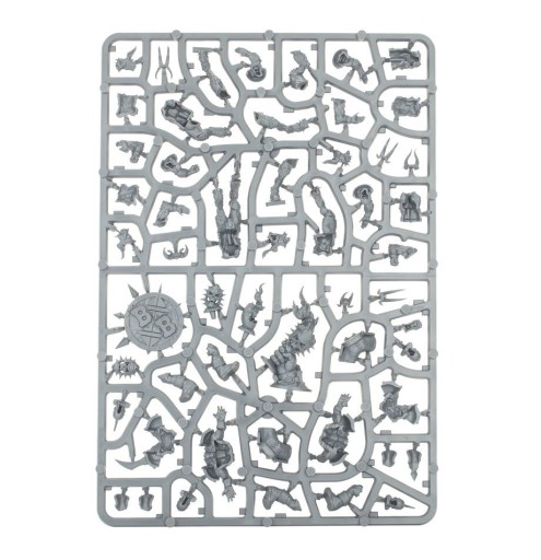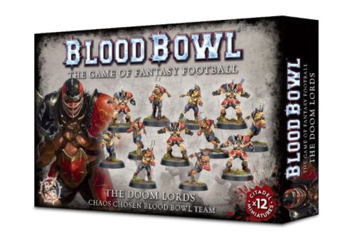 The exact identity of the owner of the Doom Lords is unknown – he is referred to commonly as ‘The Overfiend’. When establishing his team, the Overfiend cut no corners. He hired the best coach money could buy and equipped him with the best assistants, entered into numerous dark pacts with various daemonic entities and searched long and hard for the best players who could be coerced into joining him. Those who refused soon learned that the Overfiend has a very literal interpretation of the term ‘headhunting’... This multi-part plastic kit contains the components needed to assemble The Doom Lords, a Chaos Chosen Blood Bowl team. The team consists of 4 Chaos Blockers and 8 Beastmen – each Beastman’s head is interchangeable, meaning your team can represent a unique fielding of horned aberrations! The Blockers’ heads are interchangeable amongst themselves, too. There are a host of extras in the kit – 2 turn markers, 2 double-sided score coins in the shape of Chaos stars and 6 balls – 2 each of a flaming ball, a skull ball and another skull ball, these lacking pegs. Supplied with 12 32mm Blood Bowl bases, a 1,000,000 GP roster and an Chaos