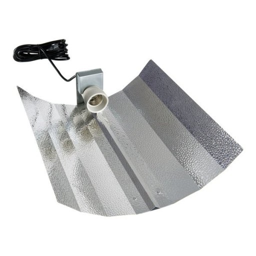 Standardowy odbłyśnik wykonany z perforowanego aluminium ( zapobiegający puszczaniu "zajączków" które mogą przypalić roślinę ), równomiernie rozprowadzający światło.
