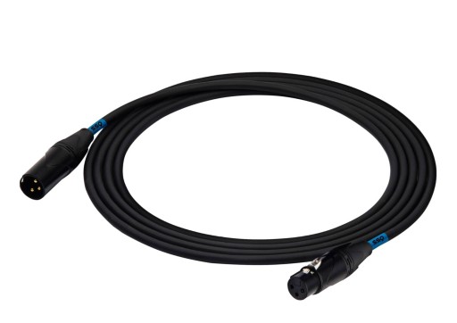 Model DMX to kabel którego końcówki zakończone są z jednej strony XLRem męskim, drugiej zaś XLRem żeńskim. Na pierwszy rzut można powiedzieć że jest to zwykły kabel XLR lecz nic bardziej mylnego. Kabel DMX charakteryzuje się większą impedancją oraz dodatkową folią w oplocie co chroni przed wpływem zewnętrznego pola elektromagnetycznego- potocznie mówiąc chroni przed zakłóceniami sygnału.