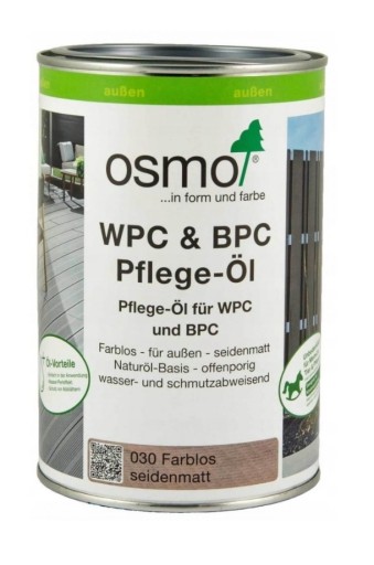 Osmo 030 olej do kompozytów to produkt przeznaczony do pielęgnacji tarasów wykonanych z kompozytów takich jak WPC (polimerowo-drzewnych) oraz kompozytów BPC (polimerowo-bambusowych). Zaleca się także stosować do innych hydrofobowych powierzchni z tworzyw sztucznych na zewnątrz takich jak: meble ogrodowe i ogrodzenia.
