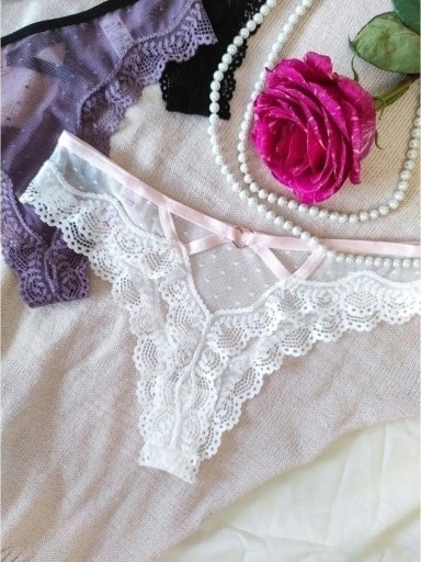⭐Fikuśna serduszko dodaje im uroku i seksapilu. Miłe i ślicznie wykonane koronkowe stringi.