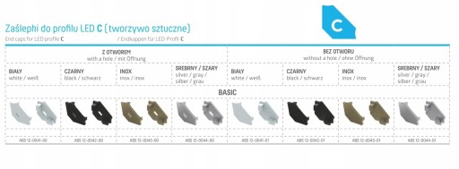 ЗАГЛУШКА ДЛЯ ПРОФИЛЯ ТИПА C, СЕРАЯ, ЧЕРНАЯ, БЕЛАЯ, INOX