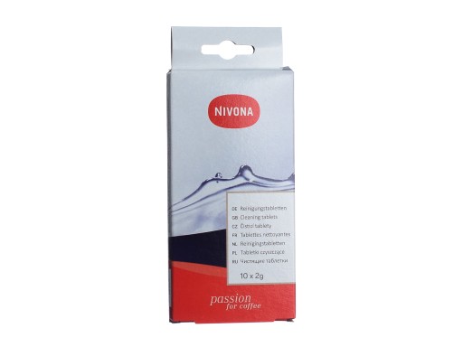 Tabletki Nivona do czyszczenia ekspresów to niezbędny detergent, który po wprowadzeniu rozpuszcza olejki kawowe ( osad) znajdujące się na ściankach układu orz modułu zaparzającego. Wykonany jest z w pełni bezpiecznych materiałów. W opakowaniu znajduje się 10 tabletek, które zapewnią twojemu ekspresowi pełny program czyszczący. Należy je stosować zgodnie z instrukcją ekspresu, który posiadasz.