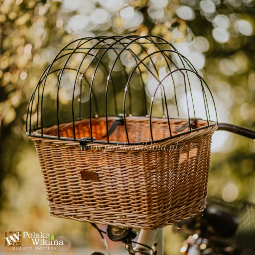 - Wykonanie: Kosz jest ręcznie pleciony z gałęzi wikliny pochodzącej z polskich upraw, stworzony z należytą starannością. W zestawie znajdują się 3 paski z ekoskóry w kolorze czarnym oraz metalowa kratka. Kosz został wykonany z wytrzymałego materiału, co gwarantuje jego trwałość i odporność na uszkodzenia. Kratka, która znajduje się na górze kosza, chroni Twojego pupila przed wypadnięciem podczas jazdy.