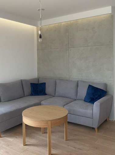 W celu uzyskania efektu płyt na suchą powierzchnie po wcześniejszym przyklejeniu mocnej taśmy malarskiej nakładamy drugą warstwę materiału.