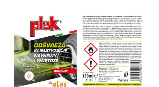 PLAK AIRCLIM ОСВЕЖИТЕЛЬ ДЛЯ КОНДИЦИОНЕРА ВОЗДУХА МЯТА 150мл