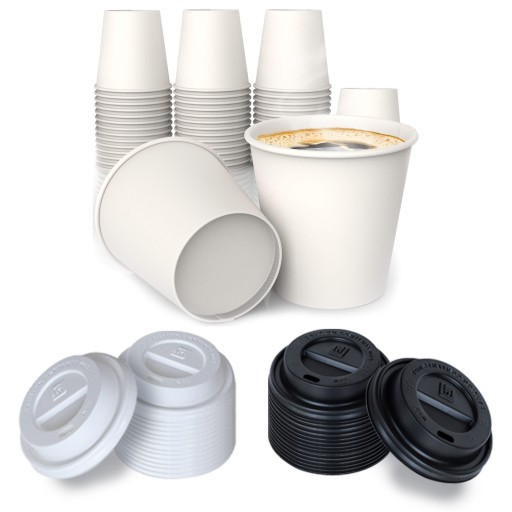 ZESTAW - KUBKI PAPIEROWE DO KAWY JEDNORAZOWE BIAŁE 250ML+ WIECZKA - 100szt.
