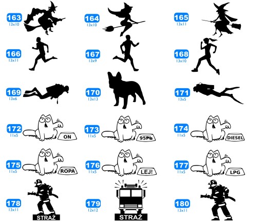 WYMIARY: Pod każdym numerem naklejki znajduje się dokładny wymiar podany w centymetrach