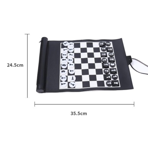 Zaprojektowany zestaw szachów ze skóry PU z 32 czarno-białymi pionkami.