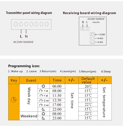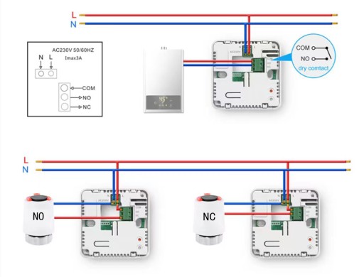ME901 WiFi Termostat ma bezprzewodową funkcję RF i WiFi. Kupujący po otrzymaniu termostatu musi zamontować odbiornik wraz z urządzeniem. Korpus termostatu można zabrać do dowolnego pomieszczenia. A gdy kupującego nie ma w domu, mógłby sterować termostatem za pomocą telefonu.