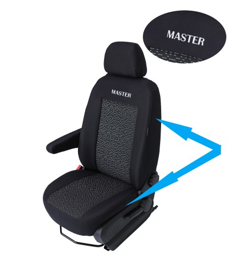 - pokrowiec na pojedynczy fotel kierowcy z wycięciem w oparciu na podłokietnik ;