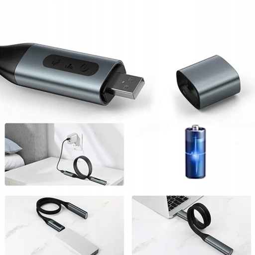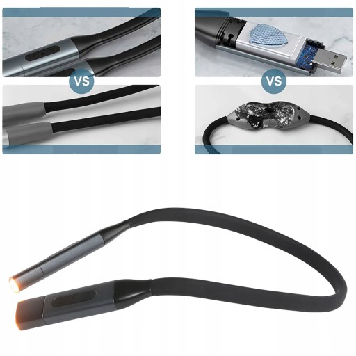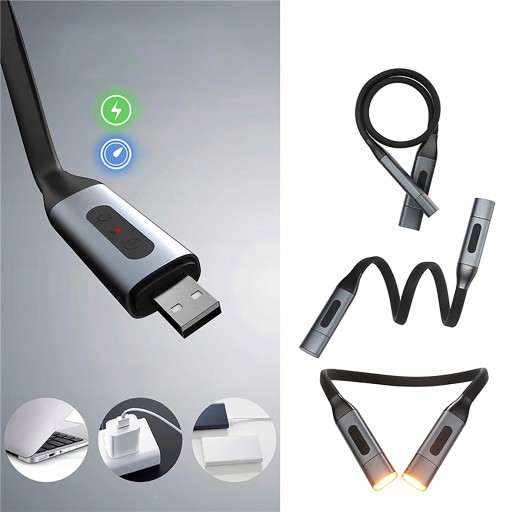 - Lampkę na szyję wystarczy podłączyć do portu USB dowolnej ładowarki, takiej jak komputer, zasilacz USB i zasilacz mobilny.