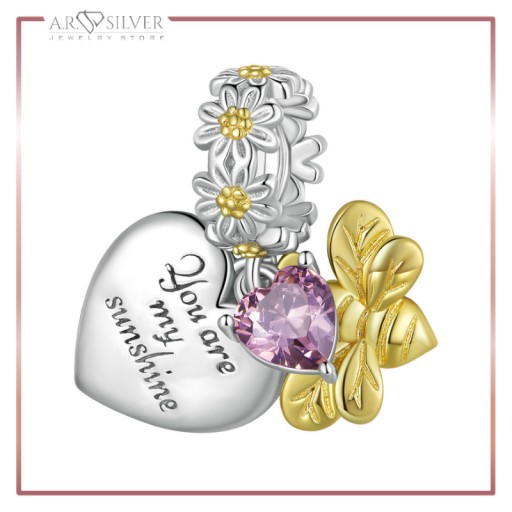 Klasyczny i subtelny charms z motywem złocistych kwiatów i owadów, oraz ozdobiona kryształowym sercem, dzięki któremu Twoja bransoletka nabierze świeżości i blasku.