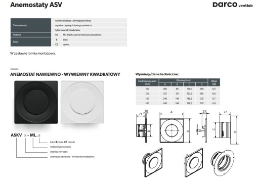 Każdy anemostat posiada w komplecie ramkę montażową.