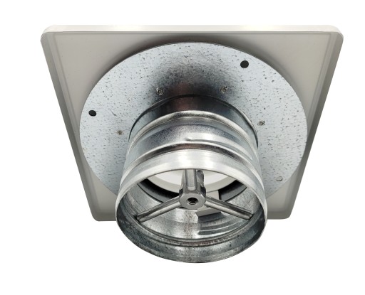 Anemostat kwadratowy ASKV Ø80 stanowi estetyczne zakończenie systemów wentylacyjnych oraz rozprowadzania ciepłego powietrza z kominków.