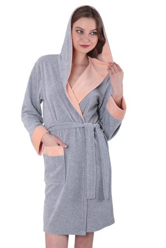 ХАЛАТ ЖЕНСКИЙ ВЕЛЮРОВЫЙ С КАПЮШОНОМ, ТОНКИЙ/МЯГКИЙ