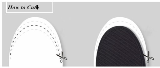 2. Przyłożyc dokładnie wkładkę do wkladki żelowej i dociąć nożyczkami do porządanego rozmiaru.