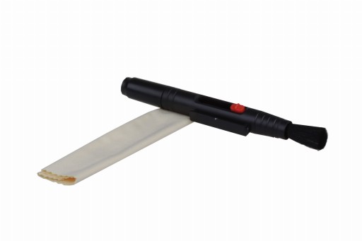 - Pędzelek służy do usuwania pyłu, kurzu i innych tego typu zanieczyszczeń - jest bardzo delikatny, nie rysuje powierzchni soczewki. Po użyciu wsuwamy go wewnątrz obudowy pióra - włosie nie niszczy się ani nie łamie w torbie czy plecaku.