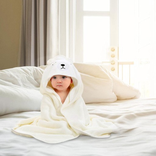 Okrycie jest miękkie i ciepłe, doskonale ochroni malucha przed chłodem po kąpieli.