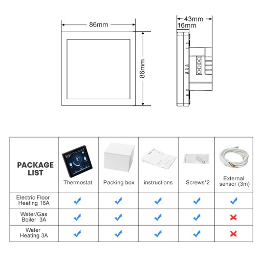 【Dokładna temperatura】Wewnętrzny czujnik podłogowy, wyczuwalna temperatura otoczenia i temperatura podłogi. Temperatura jest mierzona automatycznie z dokładnością do 1°C.