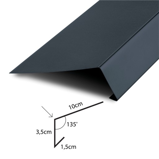 Cena „KUP TERAZ” to cena brutto 1mb pasa okapowego PN-P15 z blachy powlekanej o gr. 0,5 mm z rozwinięcia 150 mm w kolorze RAL 7016 (grafit).