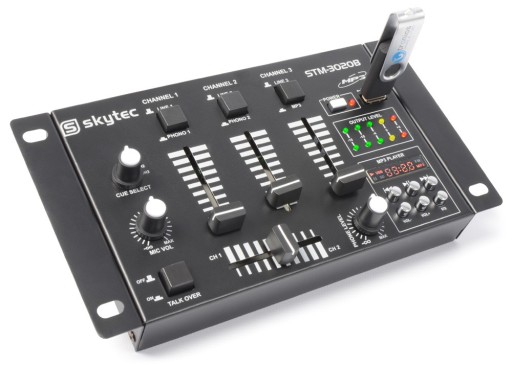 4-kanałowy mikser dla DJ'ów z odtwarzaczem USB/MP3.