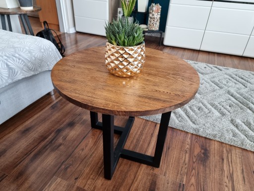 Do blatu można dokręcić dowolne nogi które pasują rozmiarem, tak by powstał piękny stolik. Możemy wykonać je z drewna lub metalu wystarczy zdjęcie lub szkic Państwa pomysłu. Blaty mogą różnić się wyglądem ze względu na niejednolity układ słoi w drewnie.