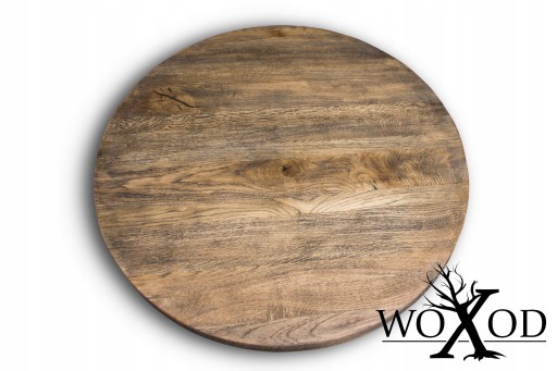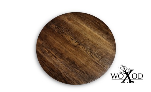 Średnica 60cm a grubość 4cm. Blat jest pokryty powłoką z twardego lakieru który jest odporny na uszkodzenia mechaniczne a jednocześnie pozostawia piękną strukturę drewna.