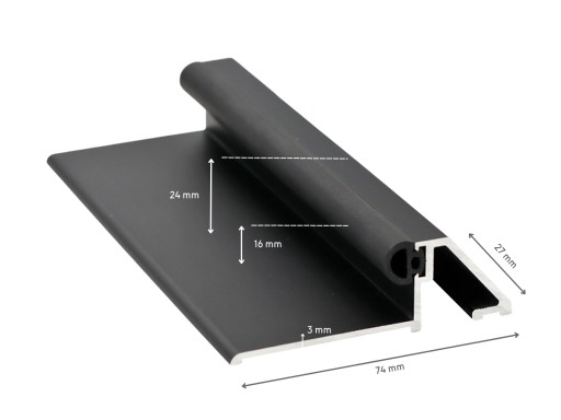 Próg aluminiowy przeznaczony do samodzielnego przycięcia ze względu na szerokość między profilami bocznymi ościeżnicy.
