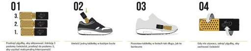 Kapsułki zawierają zeolit wzbogacony o nShield, który pomaga zachować świeżość obuwia sportowego.