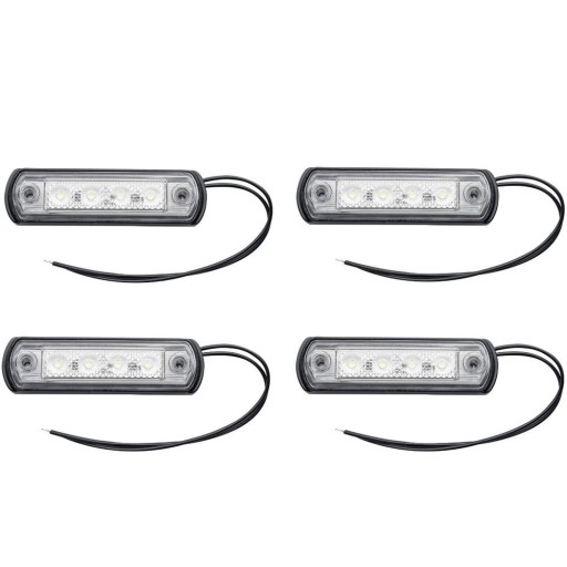 Zestaw 4 sztuk uniwersalnych obrysówek z odblaskiem wykonanych w technologii LED przez polską firmę Horpol. Wyposażone w cztery diody LED. Każda lampa posiada przewód o długości 25 cm z otwartą końcówką.