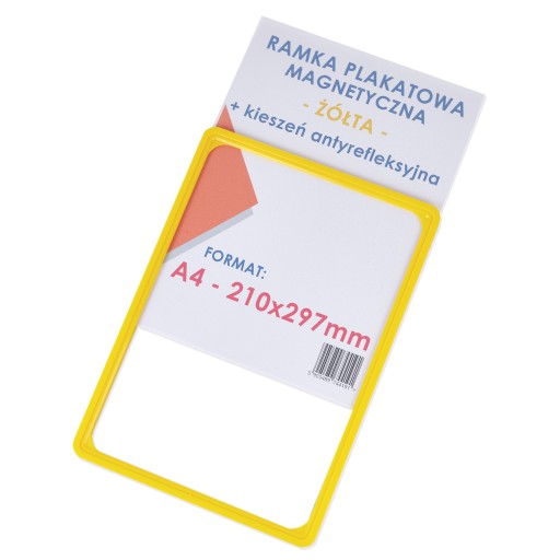 ✅ Skład zestawu: ramka plakatowa A4 żółta oraz kieszeń plakatowa A4 antyrefleksyjna