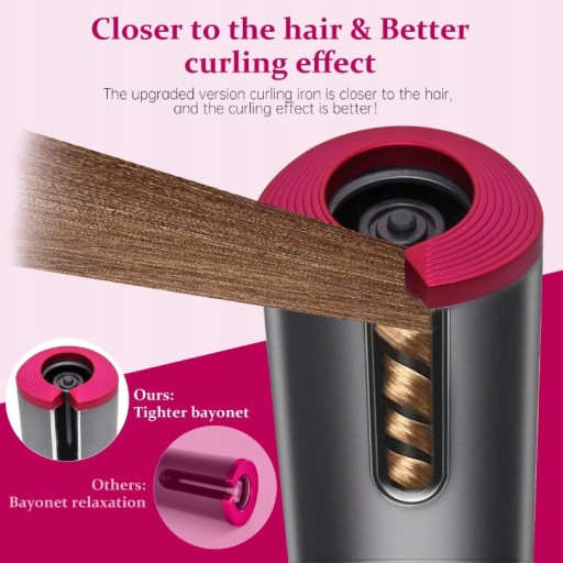 Inteligentna automatyczna lokówka. Loki za pomocą jednego przycisku, wszystko, co musisz zrobić, to nacisnąć i przytrzymać boczny przycisk, aż zakończą się sygnały dźwiękowe, loki są trwałe i wystarczająco naturalne. Najnowsza bezprzewodowa lokówka ma wbudowany inteligentny silnik indukcyjny, który automatycznie zawiesza bezprzewodową lokówkę, gdy włosy są nieprawidłowo ułożone. Brak sklejonych i połamanych włosów