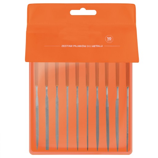 Na naszej aukcji oferujemy zestaw 10 pilników o długości całkowitej około 140 mm (w zależności od kształtu). Każdy z nich ma inny, uniwersalny kształt, na przykład płaski, czworokątny, trójkątny czy okrągły. Wykonane są one z wysokiej jakości stali węglowej C45, co zapewnia wyjątkową trwałość i odporność na zużycie, dzięki czemu można ich wielokrotnie używać bez potrzeby wymiany. Rączki pokryte tworzywem sztucznym zapewnia lepszy chwyt, bezpieczeństwo i wygodę pracy.