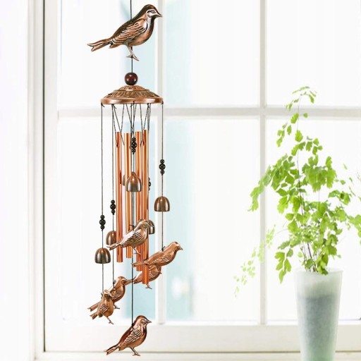 UNIKALNA KONSTRUKCJA: Dzwonek Acelity jest wyposażony w 1 duży metalowy ptaszek, 1 okrągłą metalową osłonę, 4 puste rurki aluminiowe, 6 dzwonków i 6 małych ptaszków. Od haka do dna Całkowita jednostka mierzy około 36 cali.