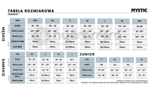 O marce Mystic Grupa kitesurferów i windsurferów kochających ekstremalne odmiany swoich sportów, które uważają to za coś więcej niż pasje. Założyciele stworzyli brand, który produkuje odzież i akcesoria o najwyższej jakości, tak aby móc polegać na nich w najbardziej ekstremalnych warunkach. Marka Mystic stała się pionierem w świecie kitesurfingu i windsurfingu. Od niedawna również w sportach takich jak SUP i wakeboard. Tworzą stale rozwijające się kolekcję odzieży i strojów kąpielowych. Mystic wierzy, że sporty takie jak kitesurfing, windsurfing, wake i SUP, to nie tylko hobby, a styl życia. Dzięki odzieży marki Mystic, możesz reprezentować swój sposób bycia zarówno na wodzie, jak i poza nią! Mystic Stealth Trapez zbudowany jest wokół opatentowanej ramy Bionic Core (BCF), która jest półsztywną płytą podtrzymującą plecy; jego unikalny materiał kompozytowy jest bardzo sztywny, ale zapewnia większą elastyczność niż konwencjonalne twarde skorupy. Stealth to ewolucja dobrze znanych modeli trapezów: Majestic oraz Legend. Łączy w sobie sztywność BCF (Majestic X) z niewchłaniającą wody powłoką wewnętrzną modelu Legend.