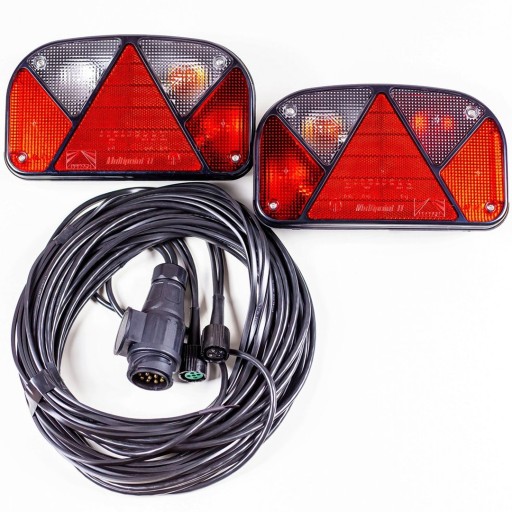 Zestaw oświetlenia przyczepy składający się z dwóch lamp tylnych zespolonych Multipoint II oraz wiązki 7-metrowej z wtyczką 13-pin i bajonetami 5-pin.