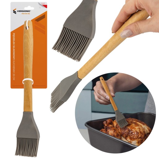Pędzelek zajmuje mało miejsca w szufladzie, a dzięki małemu otworowi w rączce można go również powiesić na haczyku. Odporny na temperatury od -30°C do aż 200°C.