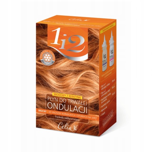 PŁYN DO TRWAŁEJ ONDULACJI MIODOWY Z KERATYNĄ marki Celia to propozycja dla kobiet, które chcą cieszyć się efektem pięknych loków jak z salonu, bez wychodzenia z domu. Specjalna formuła nabłyszcza włosy i nadaje im zdrowy wygląd, a miód odżywia je i wzmacnia. Zestaw zawiera płyn skręcający włosy, utrwalający i maskę regenerującą.Cechy produktu: