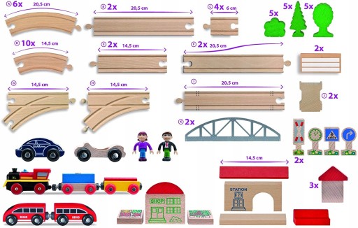 80 ELEMENTOWY ZESTAW DREWNIANEJ KOLEJKI Eichhorn z całym mnóstwem torów i akcesoriów.