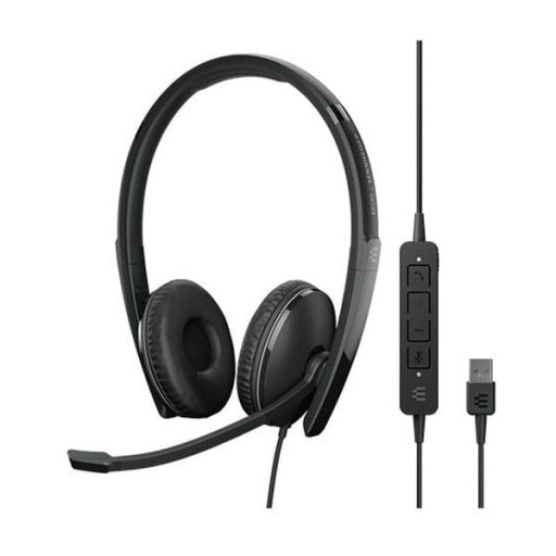 Słuchawka nagłowna z aktywną redukcją hałasu w słuchawkach do pracy z aplikacjami na komputer. Podłączenie - złącze USB-A | System operacyjny - Windows/Mac | Współpraca Microsoft Teams | Kabel z adapterem do kontroli połączeń | Wersja - na dwoje uszu | Mikrofon z redukcją szumów - przeznaczenie do pracy przy komputerze | Woreczek ochronny w komplecie | Waga: 136g