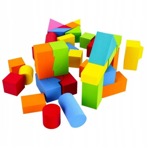 Zalety produktu: rozwijanie wyobraźni, rozwijanie zdolności motorycznych i koncentracji, klocki wykonane z miękkiego i bezpiecznego tworzywa.