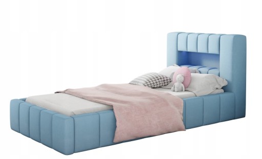 Komfortowe łóżko tapicerowane młodzieżowe AMARO MINI 90x200 cm z pojemnikiem na pościel
