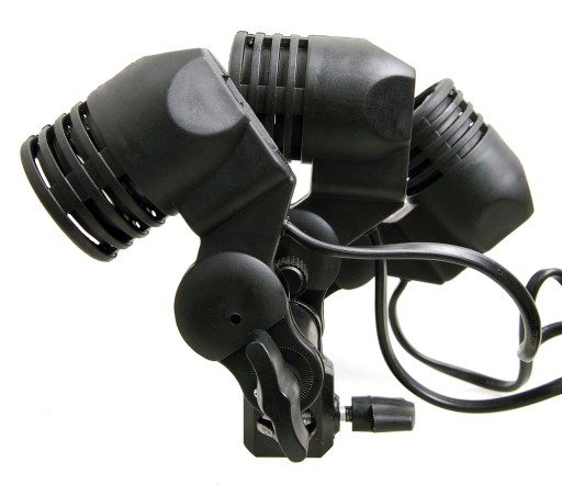 Profesjonalna oprawka potrójna do lamp studyjnych i parasolek, gwint E27, wyłączniki na głowicach