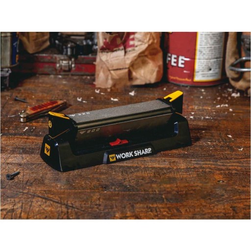 W ostrzałce zastosowano także system autorskie rozwiązanie firmy Work Sharp, gwarantujące pełne ostrzenie od nasady aż po czubek ostrza. Wszystko za sprawą ruchomego bloku ostrzącego, który pod naciskiem noża zmienia kąt i „dopasowuje się” do kształtu ostrza.
