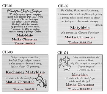 Istnieje możliwość podania własnej treści dedykacji, którą należy wysłać po dokonanym zakupie. Nasi graficy przygotują wzór projektu własnej dedykacji.