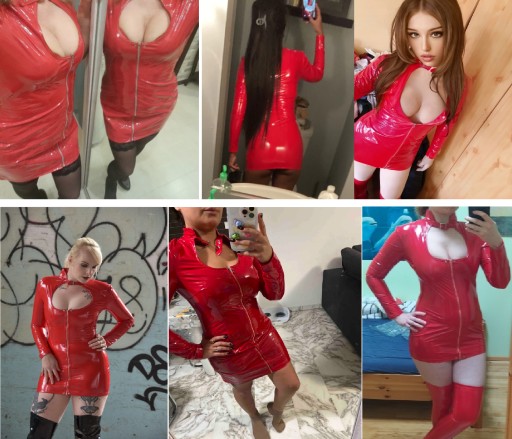 seksowny KOSTIUM DAMSKI STRÓJ SUKIENKA MINI CZERWONA SKÓRZANA DAMSKA L