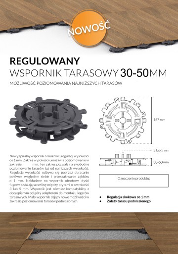 - Stabilna podstawa to solidny fundament tarasu, który wytrzyma obciążenia sięgające nawet 1000 kilogramów na jeden wspornik.