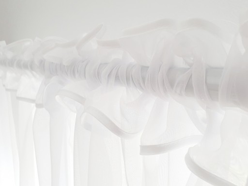 Firany poliestrowe z materiału woalowego nie wymagają tak częstego prania, jak te wykonane z przędzy bawełnianej, można je również prać i prasować w niższych temperaturach i przy użyciu delikatnych środków piorących.